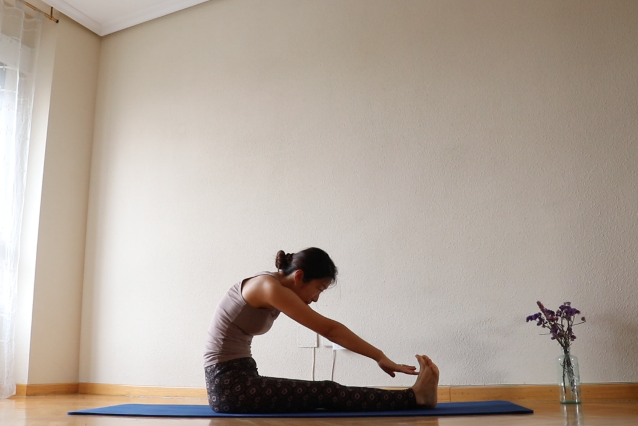 수련이 점점 깊어질수록, 척추도 다리도 모두 편 상태에서 배가 허벅지와 가까워지는 파스치모타나사나 동작을 완성할 수 있을꺼예요.