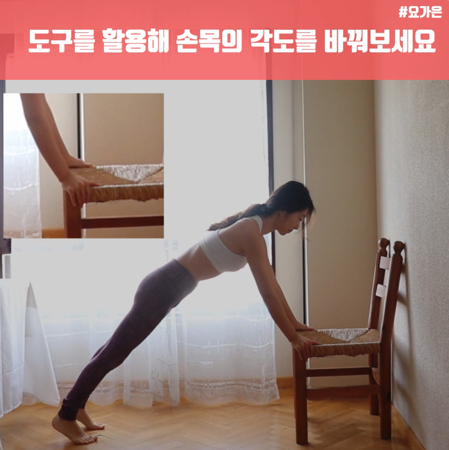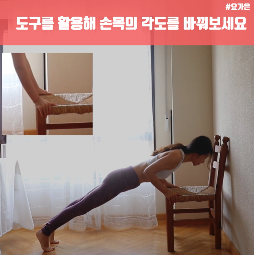 먼저, 의자플랭크로 손목의 각도를 바꿔보세요.
