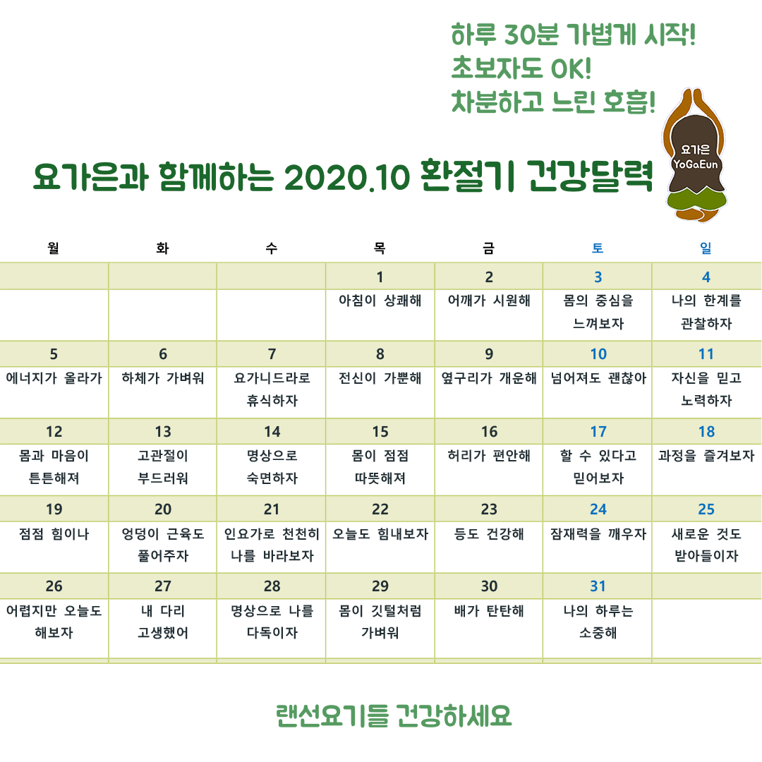 2020년 10월! 요가은 건강달력이 나왔어요❤️