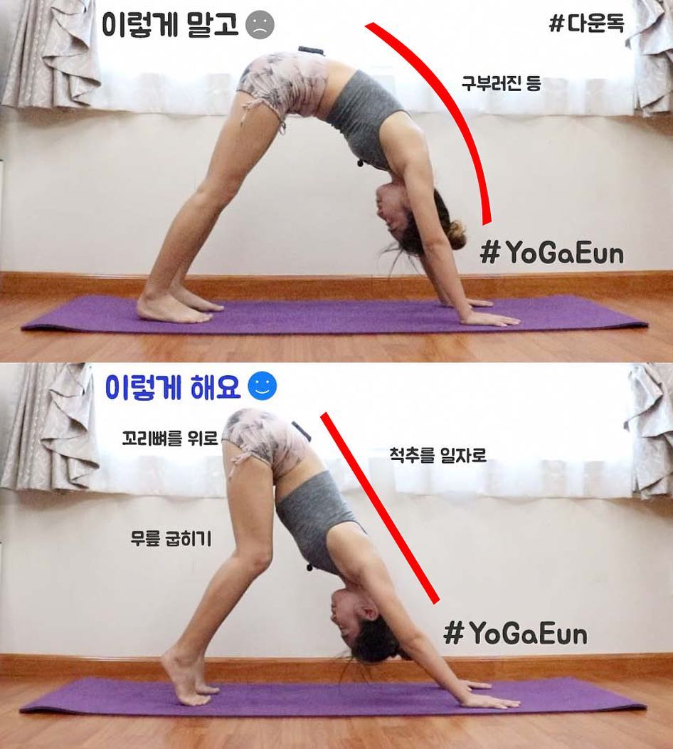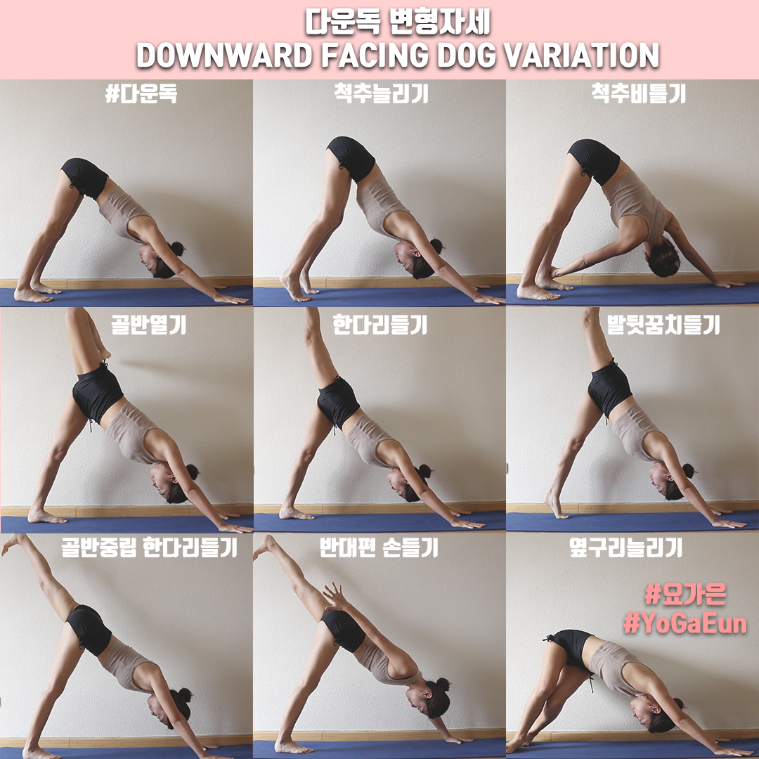 Downward facing dog, downdog 얼굴이 아래를 향하는 개 자세, 아래향한 개 자세, 다운독